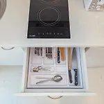 For added convenience, a separate toilet, a shower, and a washing machine are available at the apartment. A hairdryer and bath sheets are also included in the bathroom.